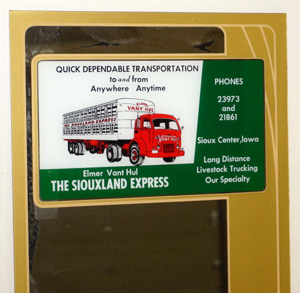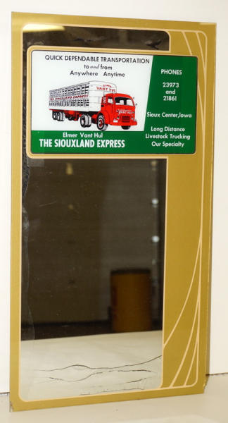22"x12", super graphics and color, bottom two corners are chipped and has some age spots in the mirror, not mint, but still a really cool piece of Trucking advertising