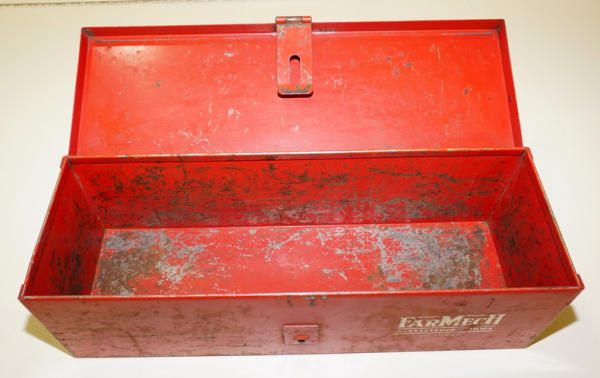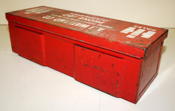 used original, part of the latch is missing, has some wear to the top, but overall the lettering is pretty good