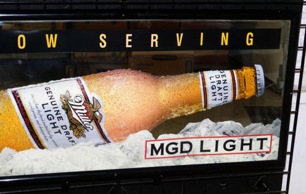 21"x44", used, a little faded and has scuffs, holes in the frame from being screwed to the wall; no shipping