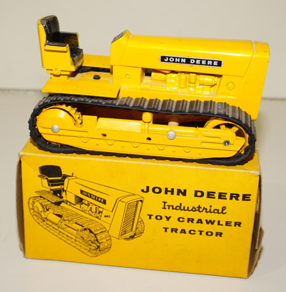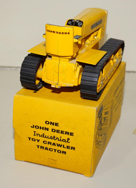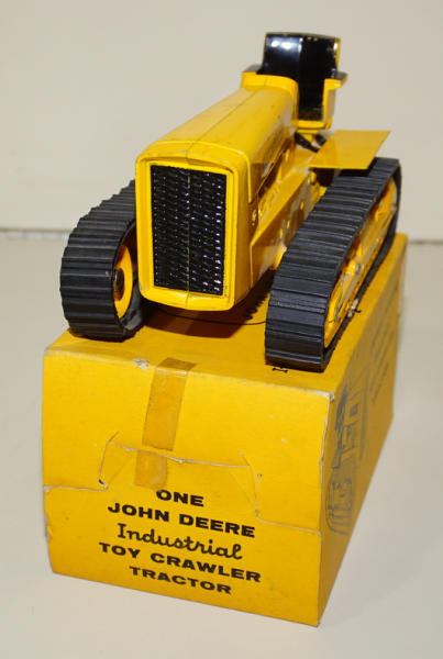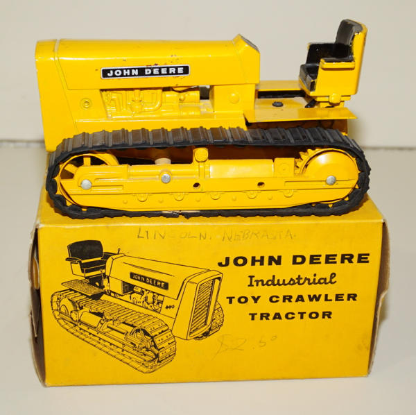 Toy is 97% condition with some minor play wear; one track has been repaired; box has "Lincoln, Nebraska" Written on one side, some soiling and general wear, box rates 7.5 condition