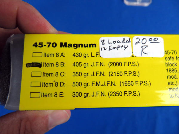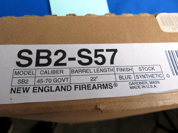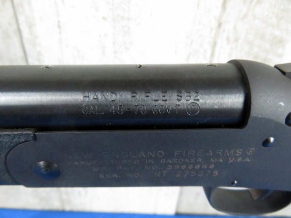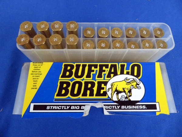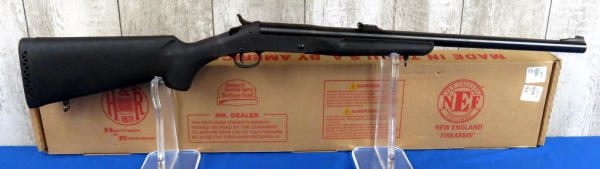 22" BBL; sights; easy break action; black synthetic stock; Mint & unfired; original box; includes 8 live rounds and 12 brass of 405gr. JFN Buffalo-O Bore Ammo; SN#NT275275