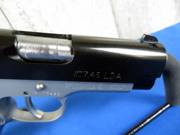 3-5/8" Stainless Barrel; night sights; 3-magzines; factory plastic case; rubber checkered grips; has been used but overall very nice; made in Canada; SN#P117420