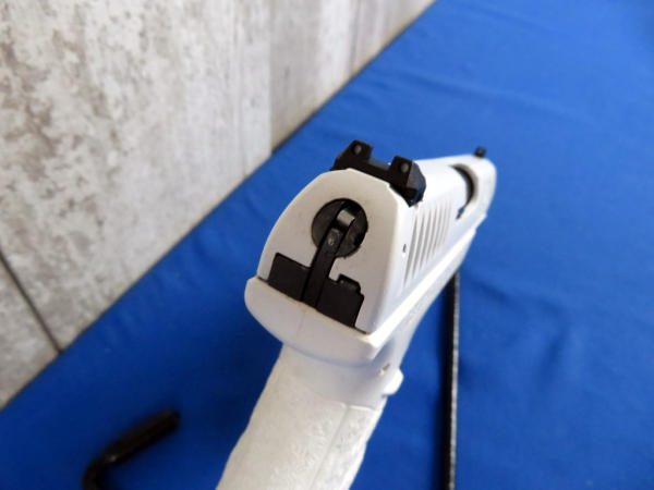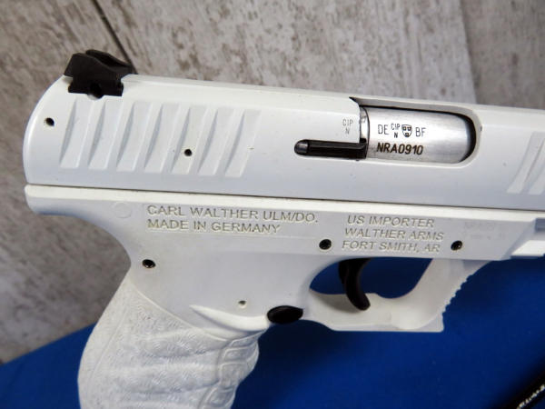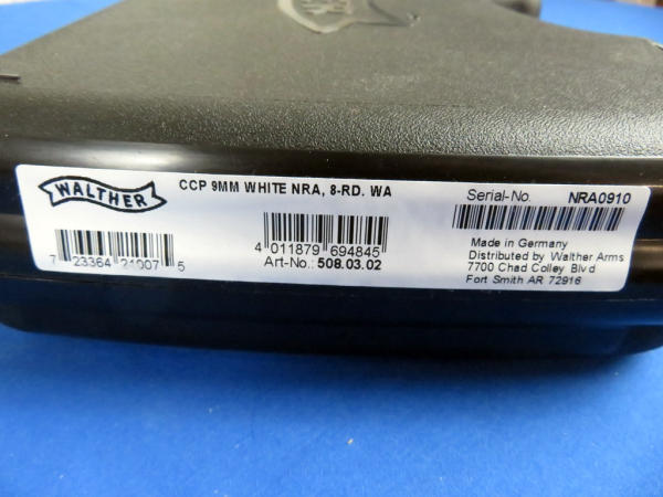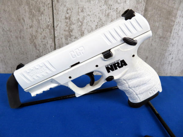 3.75" Stainless barrel; night sights; all white frame & slide; "Friends of NRA" logo on left side of slide; two magazines; factory hard case; made in Germany; has been fired; SN#NRA0910