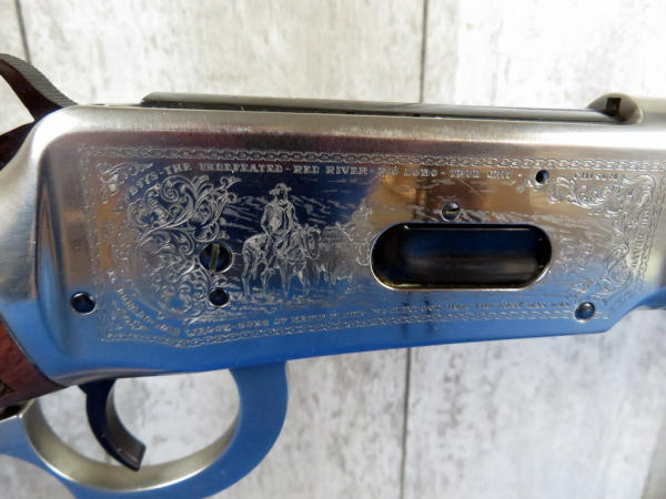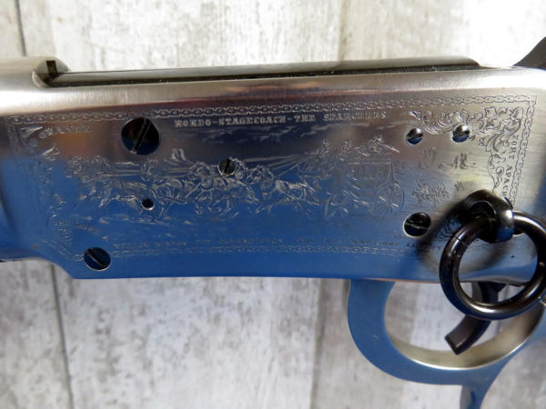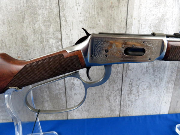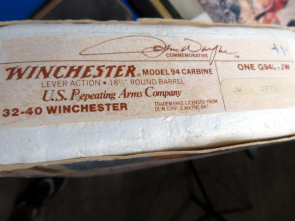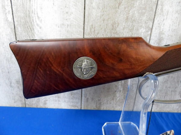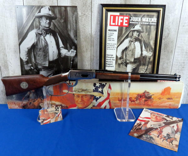 Mint & NIB; includes original styrofoam & sleeve along with the brown box originally shipped to Scheels in Sioux City; Large Loop; stainless factory engraved receiver; Saddle ring; includes an original Winchester 1981 Catalog, Tin Sign & framed Life Magazine; 18" BBL; very iconic commemorative and this would make a great set hanging on the wall! SN#JW2975