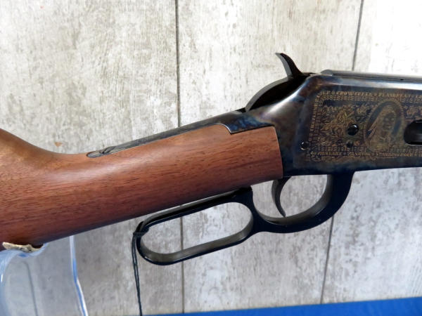 24" BBL; factory engraved case hardened receiver; brass tacks on forearm & right side of stock; saddle ring; original styrofoam and sleeve; sleeve has some minor wear; Mint & unfired; SN#CCH12225; from the Samuel Burtwistle Estate