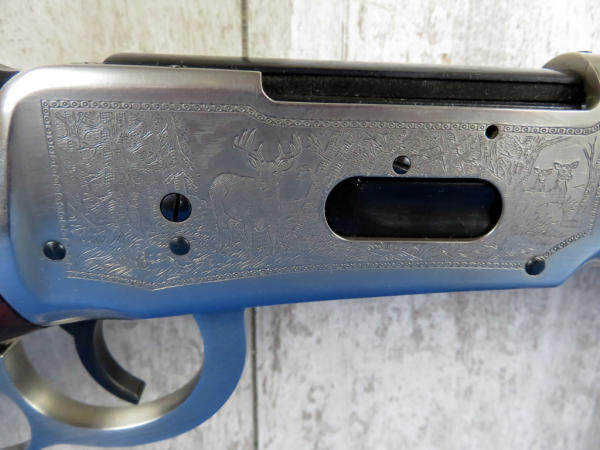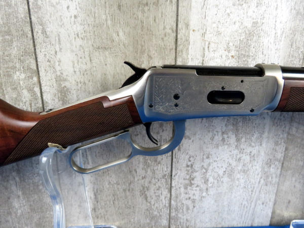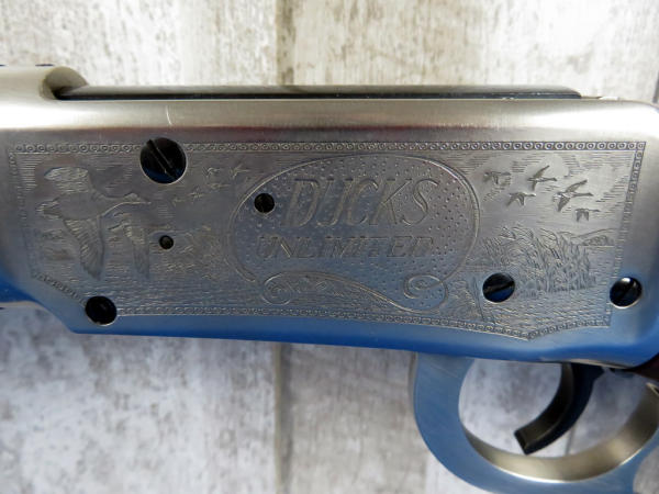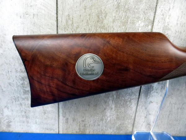 20" Round BBL; highly engraved stainless receiver; very fancy wood w/checkering; DU medallion on right side of stock; Deer scene on right side w/ducks on left; no box but mint firearm; SN#DU860315
