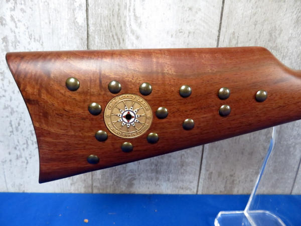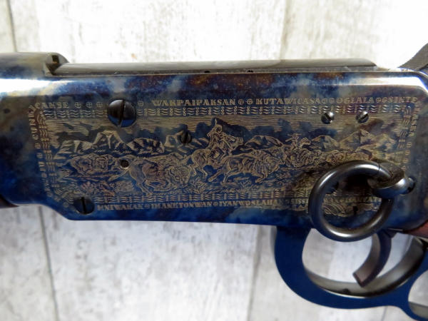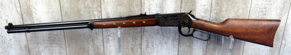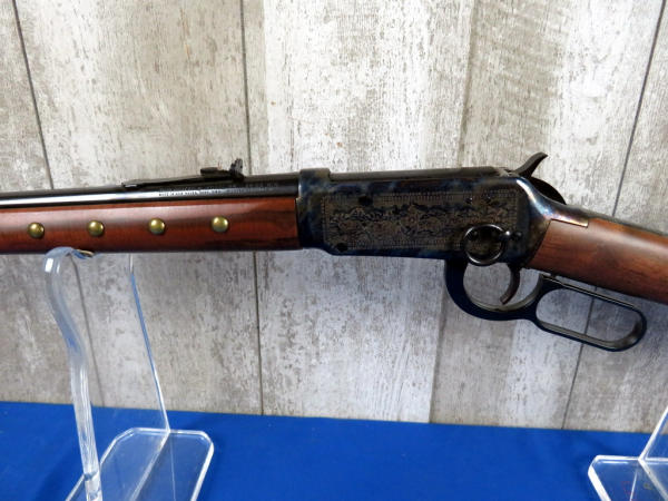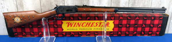 24" BBL; factory engraved case hardened receiver; brass tacks on forearm & right side of stock; saddle ring; has Winchester red plaid box, no sleeve; Mint & unfired; SN#CCH123