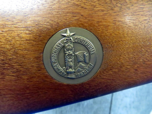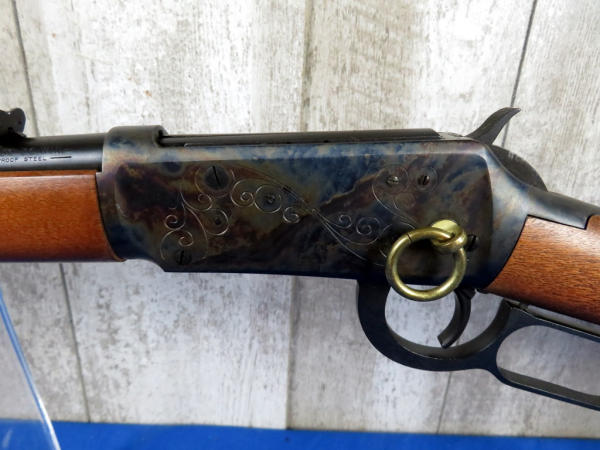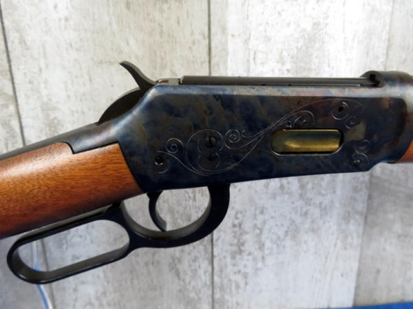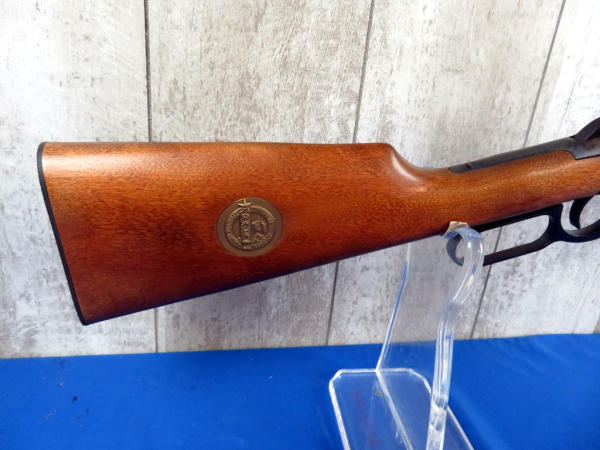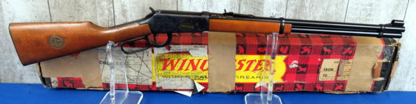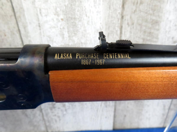 only 1,501 mfg in 1967; original plaid box has some wear but very cool that the shipping tag is still on where it was shipped to Juneau Alaska!; 20" BBL w/hooded front sight; scrolling on both sides of the case hardened receiver; saddle ring; SN#APC1492; from the Samuel Burtwistle Estate