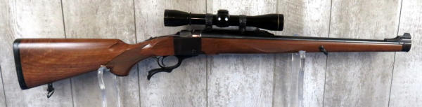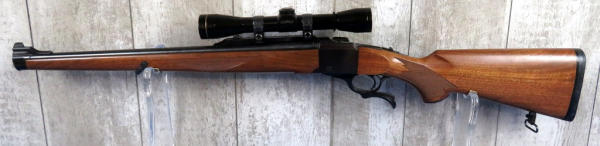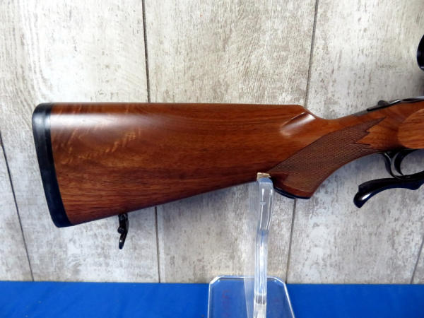 20" BBL; smooth action; Leupold M8-4X scope is very clear; lightweight barrel with full length Mannlicher stock; SN#133-33637