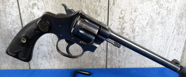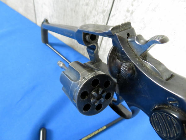 6" Pencil BBL; hard plastic checkered factory grips; has some bluing loss; swing out 6-shot cylinder; SN#18527