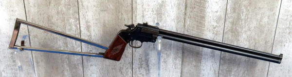 Only the 2nd one we've ever offered! 18" BBLs; easy break action w/trigger guard slide to open; Tenite grips; top barrel is marked for .22SL/LR and bottom is .44cal or .410ga for 2" shells CC; has a folding wire stock; overall nice condition with some minor wear; ATF considers this a long gun due to the 18" barrel length and can be sold under the C&R category as well; SN#13701