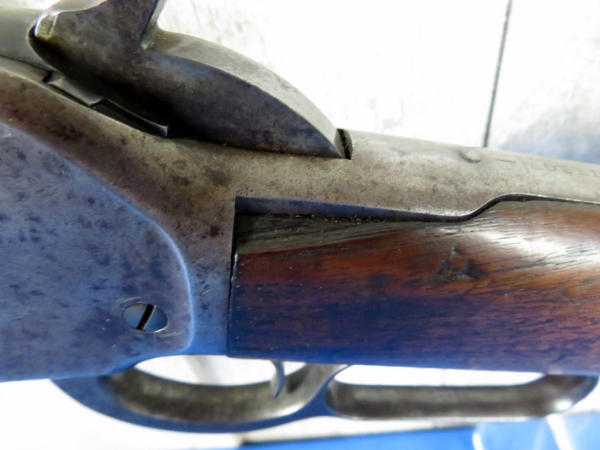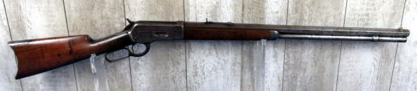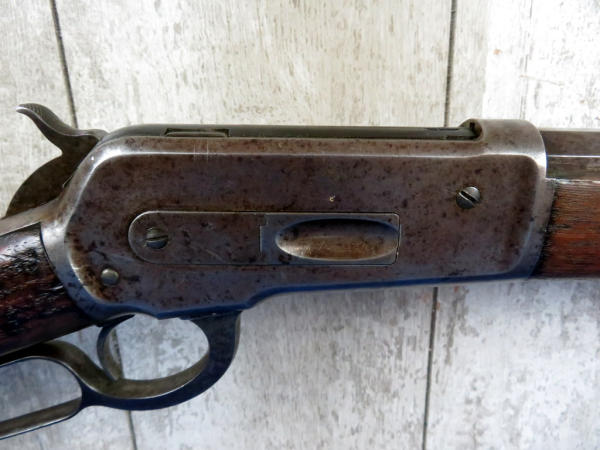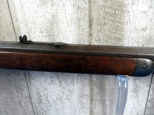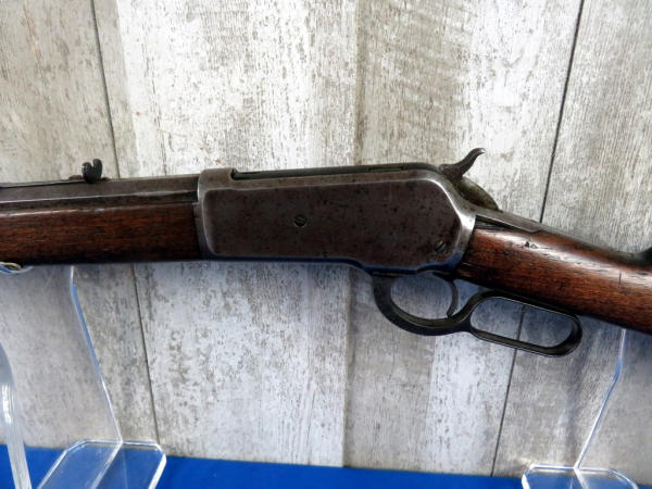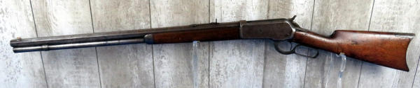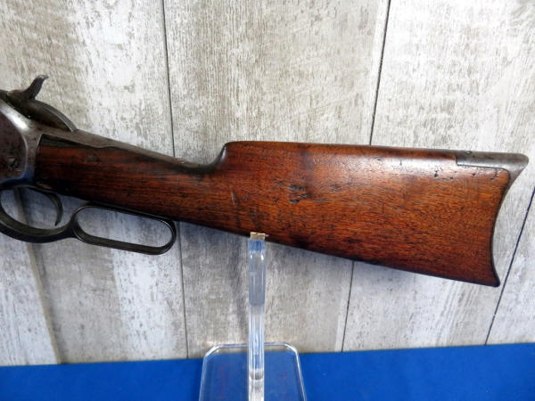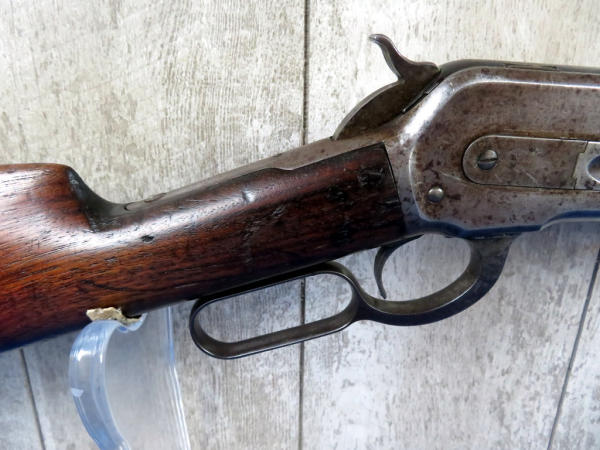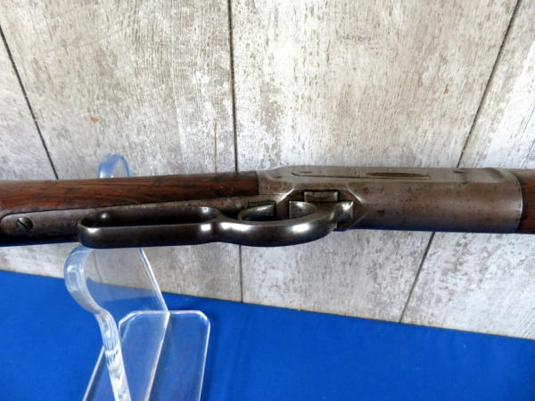 when looking up the early SN#4633, it was determined this to be a 2nd year manufacture in 1888! 26" Oct. BBL; full length magazine tube; action needs alittle cleaning but does operate; bluing is dull; wood is solid w/some field marks; great early lever action again! No transfer needed on this firearm due to it's age