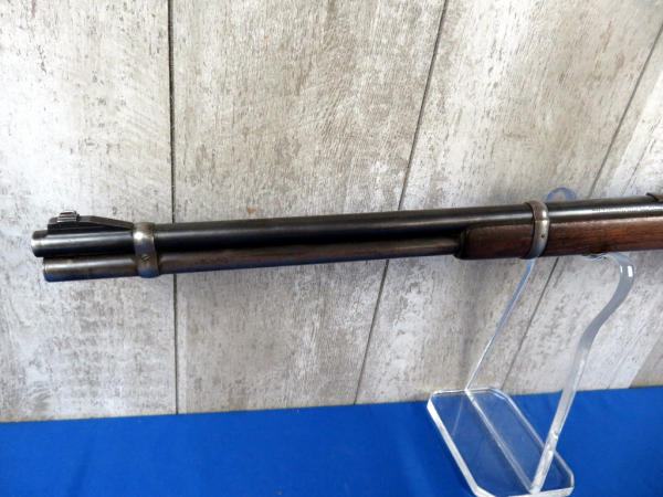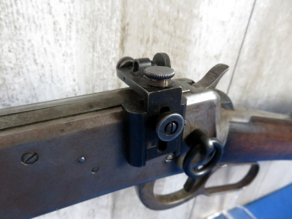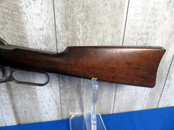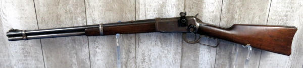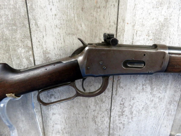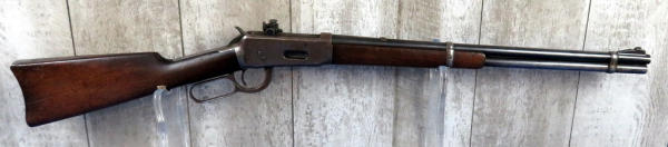 20" Round BBL; smooth action; rear peep sight; saddle ring; bluing is dull on receiver; straight stock; has some minor field marks; SN#25142