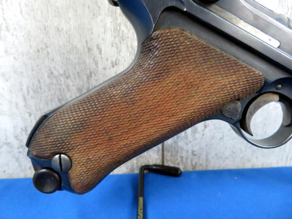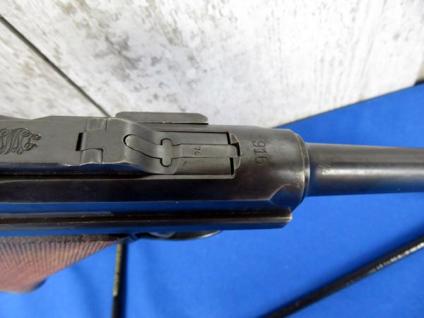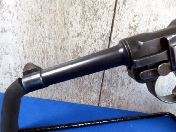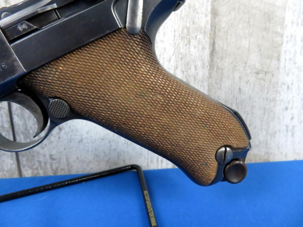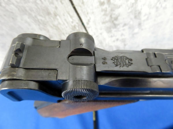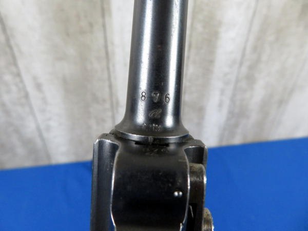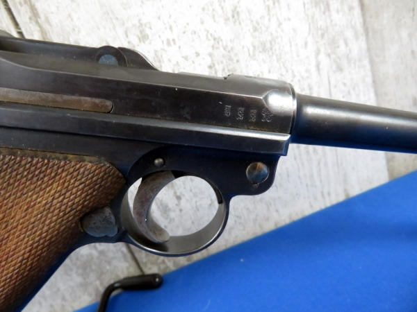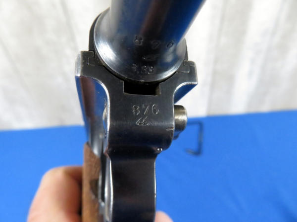 too find a single matching numbers magazine is rare, but to find two is almost unheard of! 4" BBL; bluing has some spots of thinning; gun & both magazines appear to be all #'s matching; has DWM script on top; wood checkered grips; early SN# of 876;