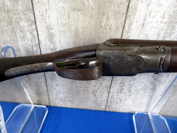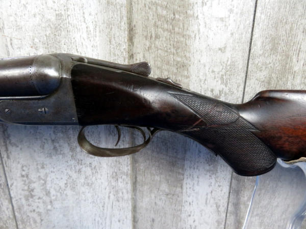 is missing the ejector from the barrel; 23" BBLs; easy break action; bluing is thin; wood has been fixed by trigger guard on left side, nice checkering and nice forearm; believe mfg.1901; Left-IM & Right-IC; two triggers; SN#104470