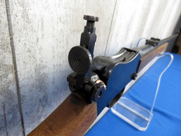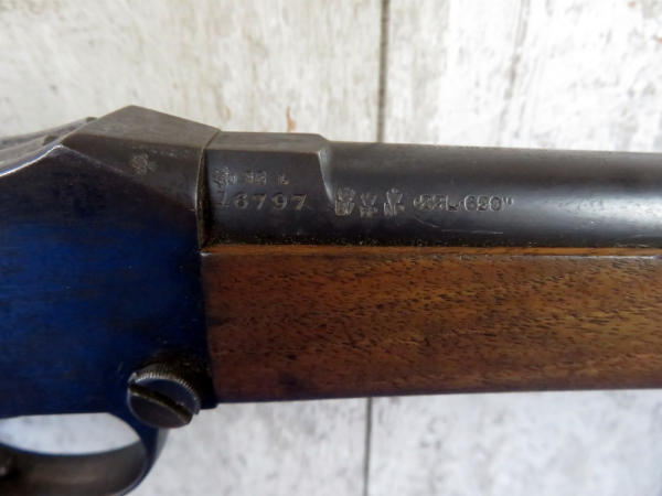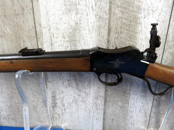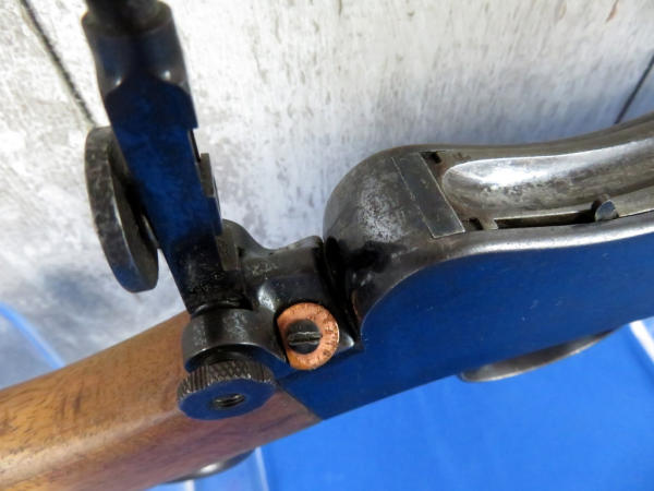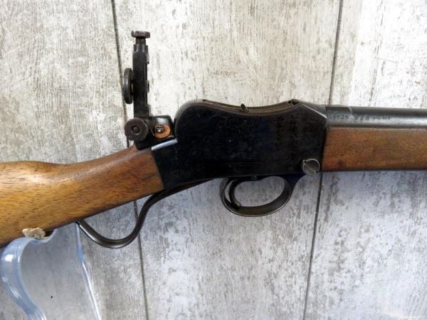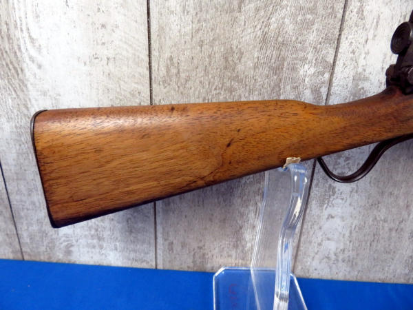 25" BBL; easy action; has bluing loss and dull finish to stock; wood is solid with hardly a mark; has rear flip up sight, wrong screws holding sight on; SN#16797