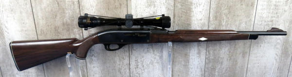 19" BBL; nylon stock overall is nice and clean with very few scratches; Tasco 4x32 Omni-View Opti-Center scope is very clear; magazine tube in stock; has some minor spotting on left side of receiver; SN#2421299