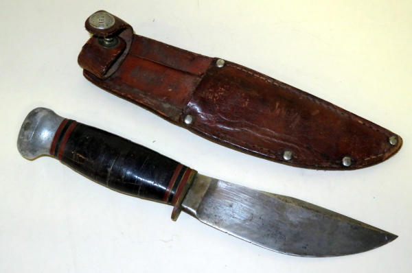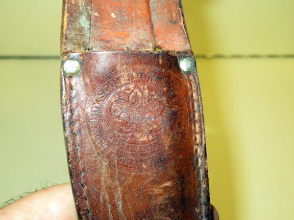 knife has some wear, there is NO BSA logo on the knife; leather sheath has Boy Scouts of America Logo & button is marked Marbles; blade is 4.5" long;