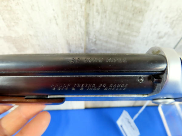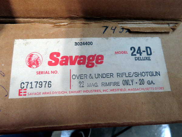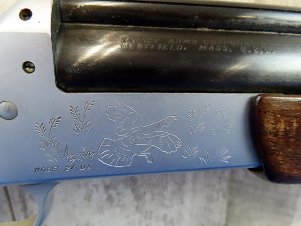 24" BBLs; easy break action; stainless receiver is engraved; gold trigger; nice used condition; 2.75" & 3"; FC; comes with an original Savage Mdl.24 box, but box is for a 22Mag/20ga.; SN#7JA33
