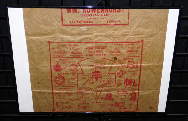 about 17'x22", shows lots of tools and items, including Winchester Shotguns & Rifles, neat piece, in a poster frame