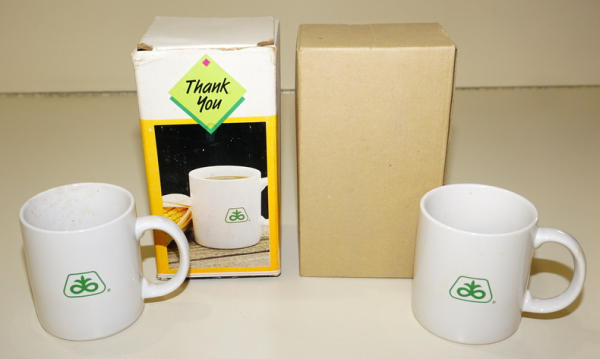 all NIB, 2 in brown box, 2 in graphic box, mugs are good, boxes have wear, all to go