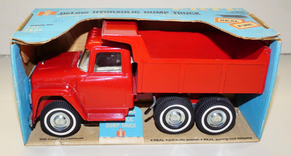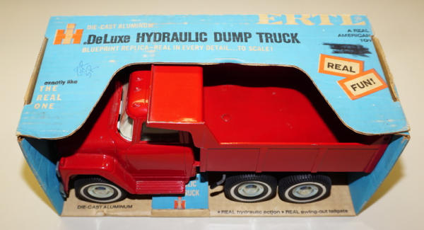 near mint toy, small chips on the edge of the dump box, TS hubcaps, chrome plastic grill, box has some discoloration and scuffs, box rates 7.5 condition