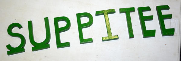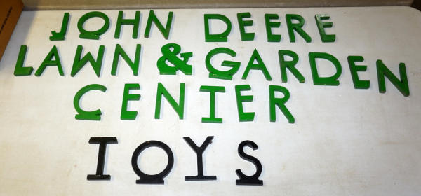 each letter is 5" tall, all look to be original and in very good condition, comes with some extra letters, not sure what it's suppose to spell; neat piece and very hard to find, the display is shown on the back of JD L&G Owner's manuals; we have never offered one of these sets