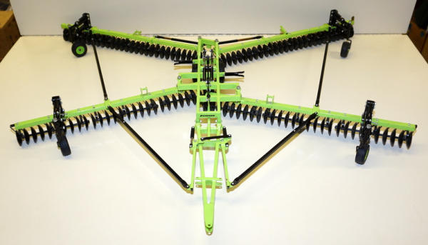 1/16th scale, 100% scratch built from steel, when folded, it is 42" long! Fantastic piece and looks to be A-1 condition; built by Vern Eymann, but this piece came from the Toy Farmer Museum in Lamoure, ND; it was not included in their auction a few years ago because it needed some light repair and touch-ups; the work has been done and it's ready to go, great piece!