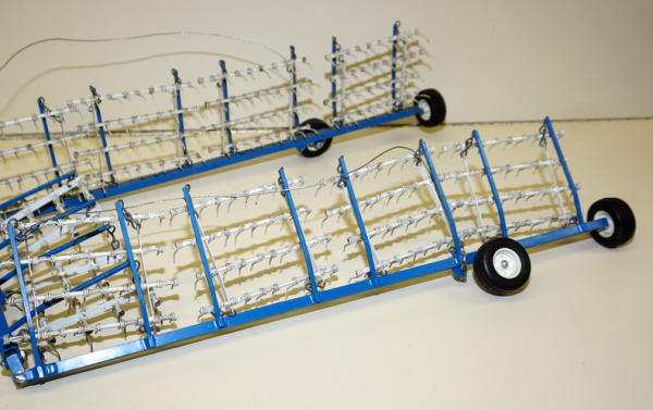 100% scratch built from steel, fine detail, white has discolored with age some and cylinders will come apart, but not broken; 32" long as shown, unfolds to about 40" wide! Not marked, but Eymann Family told me this was built by Vern Eymann