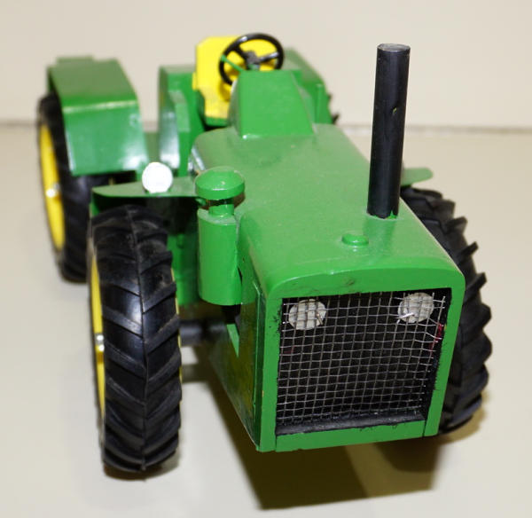 1/16th scale, all hand made from wood, pretty nicely built, don't know the maker