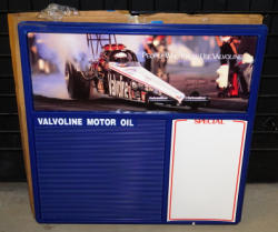 30"x30", never used, light plastic, with original box, but box is a little rough, includes all the letters for the menu board too