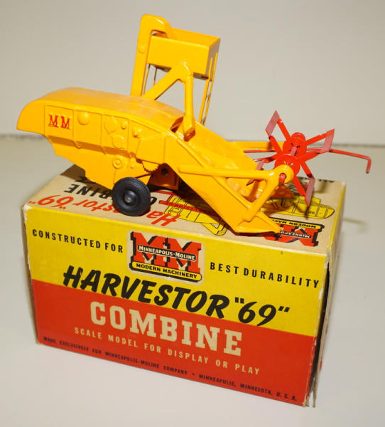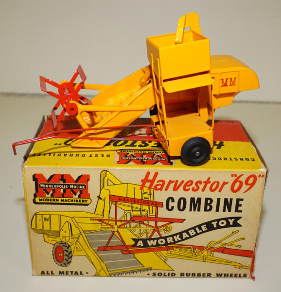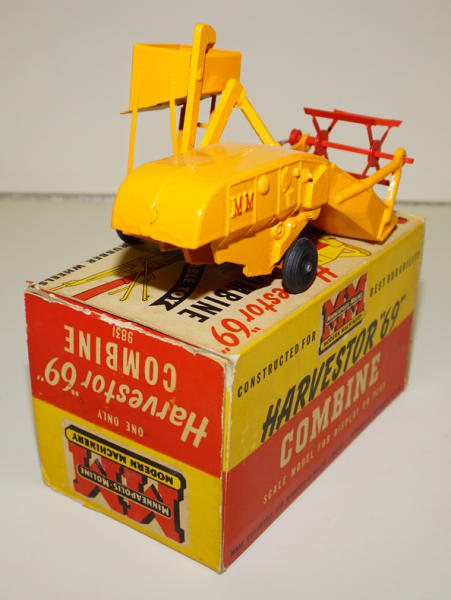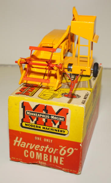 1/32nd scale, near mint toy, only some light paint chips on the wire hitch; box is good with some tears on the end flaps, discoloration and general wear, but overall a good 8 condition box; has the box liner which is pretty rare for this toy