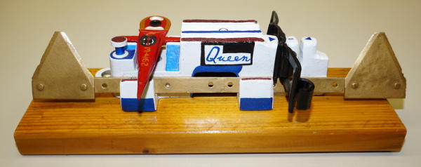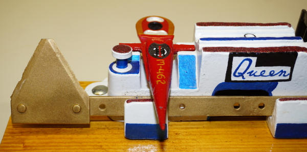 mounted to a board, really nicely repainted, 18" long overall, great display piece