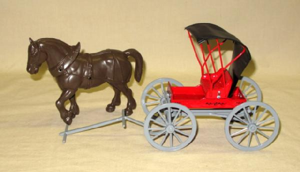 no box, sells as a set, Horse doesn't mount correctly to buggy, but displays well