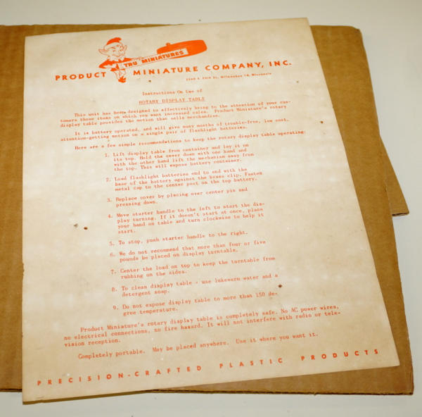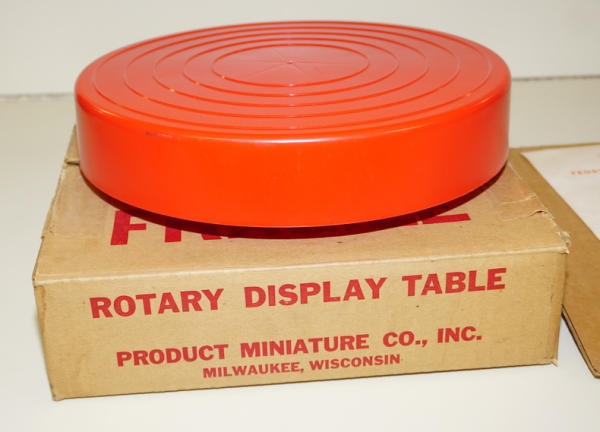 11" across, plastic battery op turn table, mint with original box liners and instruction; box has a bit of a water stain on the top, but still nice, rates 8.75 condition; really neat piece for the PM collection