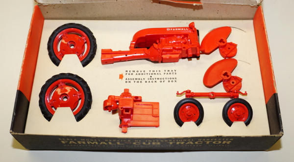 Toy looks to be mint & complete, small parts are still in the wax paper sack under the toy; box has some discoloration and edge wear, box rates 8 condition