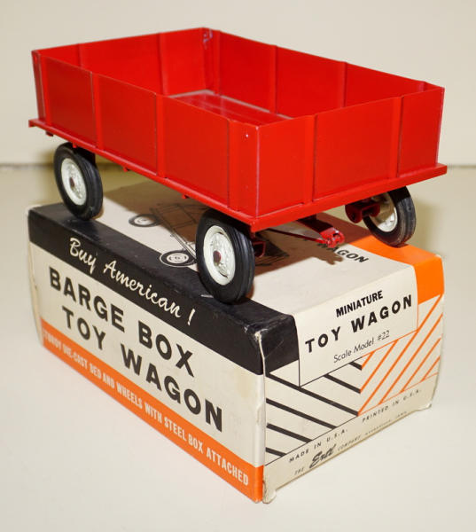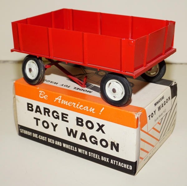 Mint toy, factory no decals, steel sided wagon w/ diecast floor; Generic box with no IH logo, some light wear, rates 8.75 condition