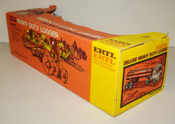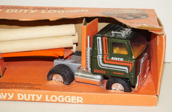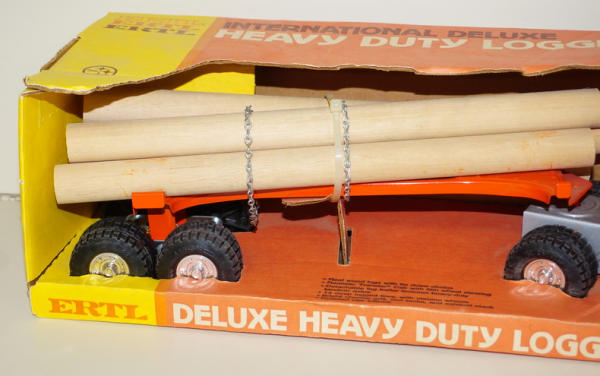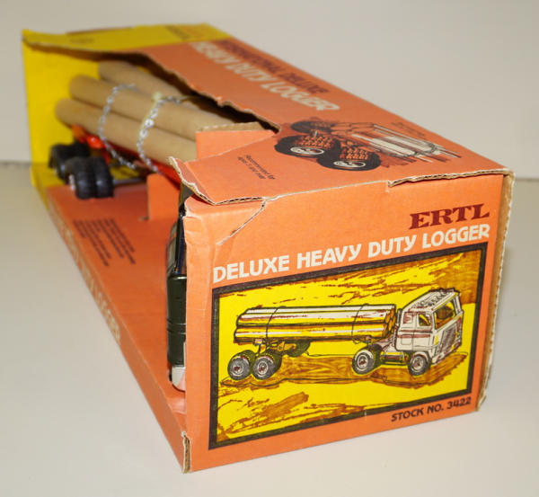 Dark Green Cab, orange trailer, mint with the original strap holding the logs on, box is nice with minor wear, rates 8.5 condition