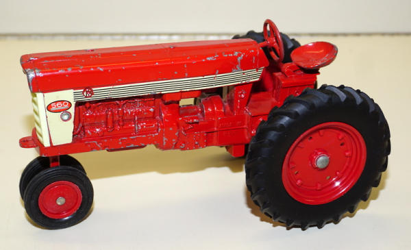 straight drawbar, has a muffler hole, but no muffler, paint is about 90% with play wear, but a really odd variation of 560