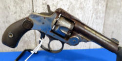 3-5/8" Oct. BBL; barrel has a lot of wear and marks; believe this is an H&R, it's worn off on the barrel; wood checkered grips; 7-shot fixed cylinder; quite a bit of wear; SN#166620