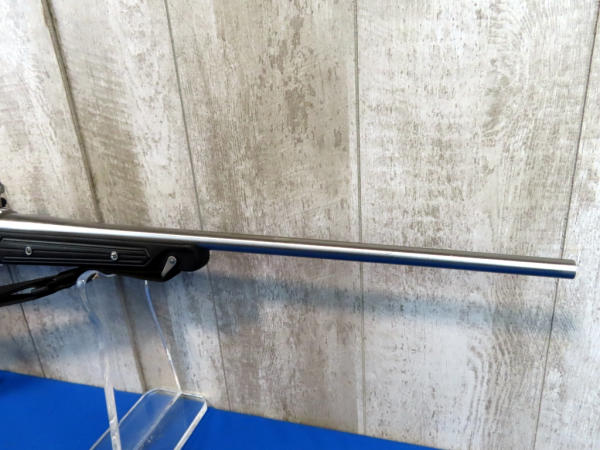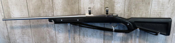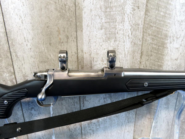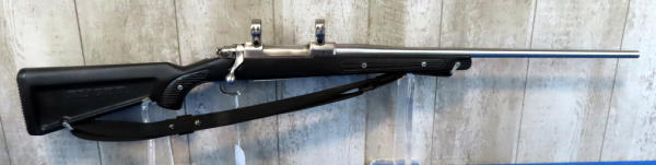 22" Stainless Barrel; super clean and hardly a mark; smooth action; sling; scope rings; black synthetic stock; SN#785-24839