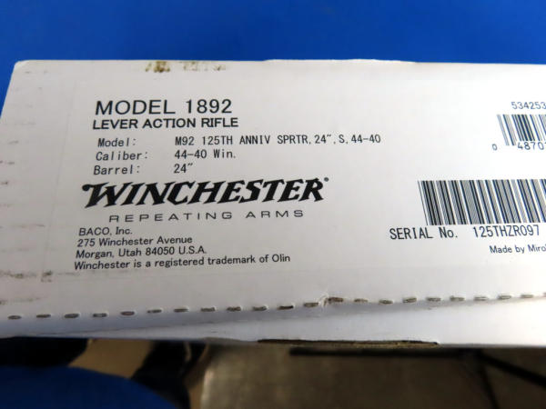 LSC; 24" Oct. to Round BBL; mint & unfired; plain white box; factory engraved receiver; English stock; SN#125THZR097