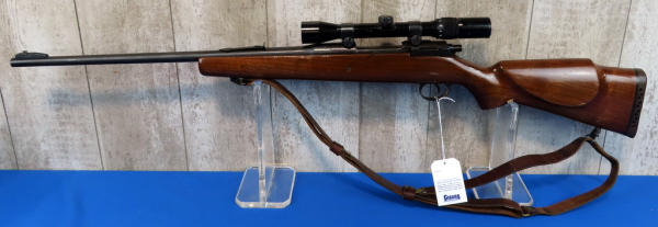 RME; 22.5" BBL; smooth action; leather sling; Horizon 3x-9x32 scope; used w/field marks, high gloss stock; SN#797987