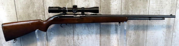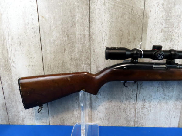22" BBL; trigger guard is broke; used condition w/some field marks; tubular magazine style; clean Simmons 4x32 scope; no SN#