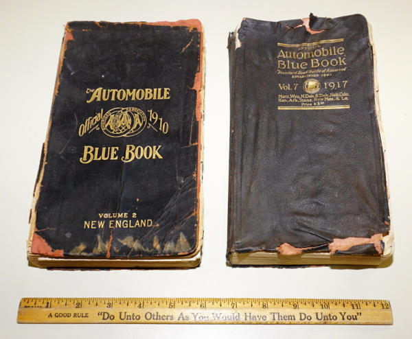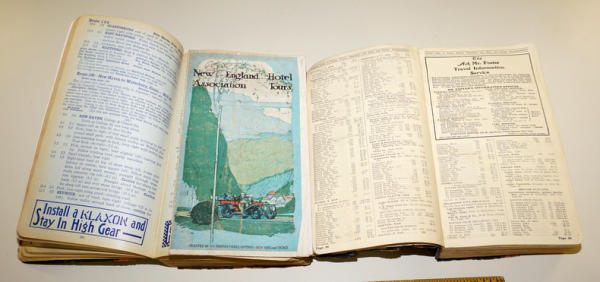 each 1,000+ pages, leather covers have heavy wear, some great advertising inside, all to go
