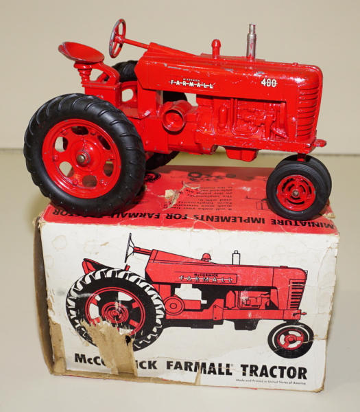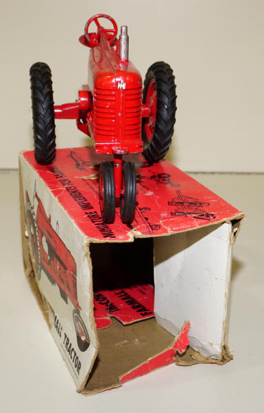 Toy is about 85% condition, has the 2pt hitch, but no drawbar; box is poor condition, but included