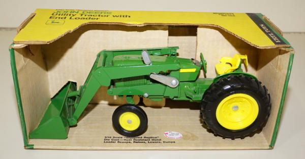 Round hood & strobe decal, pressed steel loader bucket, mint toy, box rates 8, could use a detailed cleaning