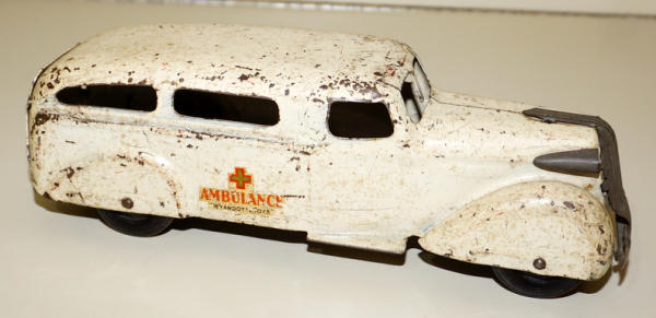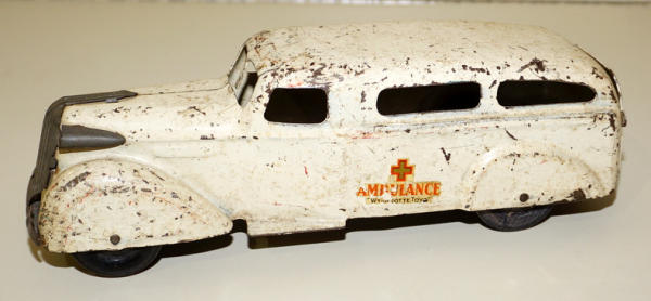 11" long, has the back door and grill, heavy play wear to the paint, but straight
