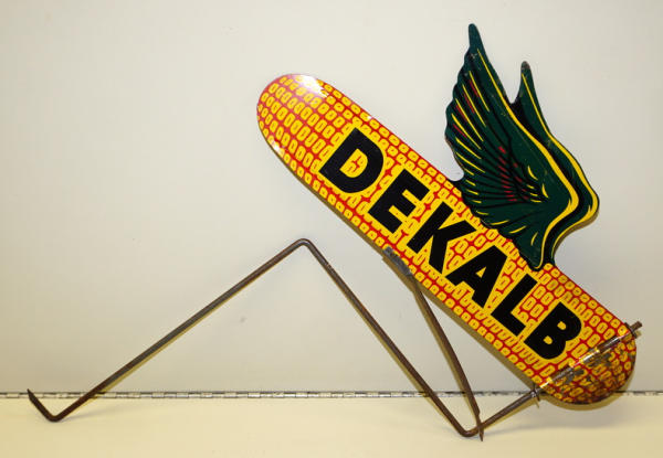 sign is 18" long, overall 24" tall, has paint loss & flaking on the nose on both sides, rates 7 condition overall