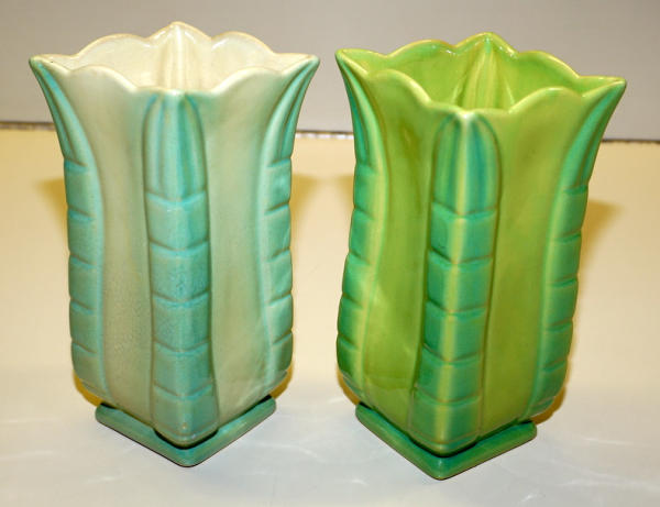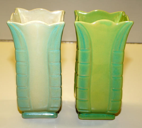 each 7.25" tall, lighter colored one has a tiny flake in the glaze, 2x the money